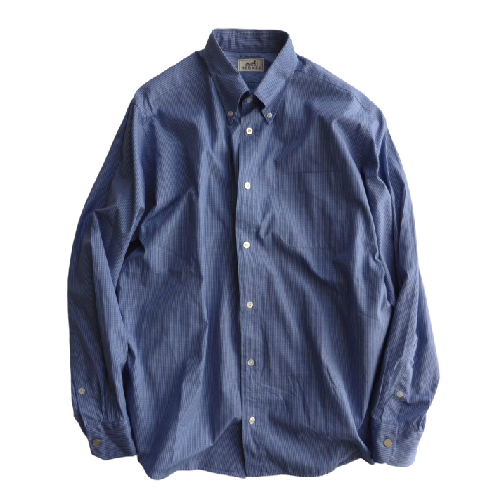 - エルメス (HERMES) コットン チェック ボタンダウン シャツ 長袖 42 ブルー ウェア メンズ(中古)