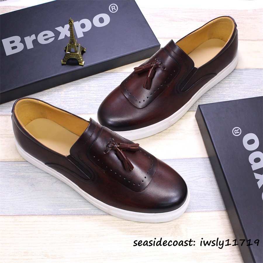 - 最高級★定価9万超 メンズ スリッポン 新品 本革 ビジネスシューズ 職人手作り レザーシューズ ローファー 牛革 紳士靴 珈琲色 25.5cm