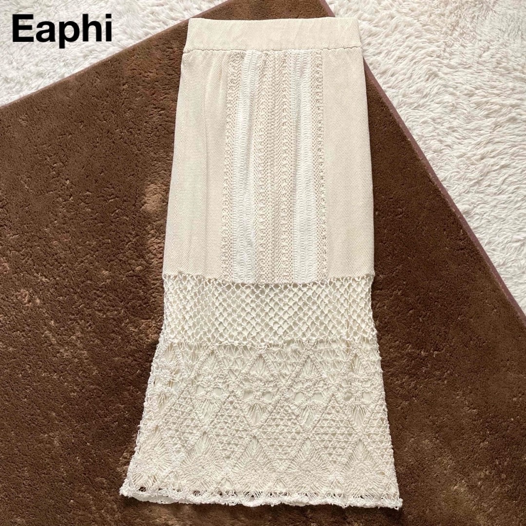> 完売品 Eaphi エフィ 繊細クロシェレースロングスカート ニット エクリュ アイボリー 2サイズ 手洗い可能 m6889