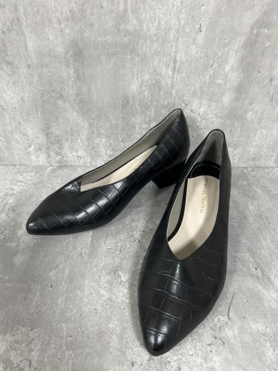 > ORiental TRaffic オリエンタルトラフィック クロコ型押し ポインテッドトゥヒール ミドルヒール パンプス size40/黒 ■■ レディース