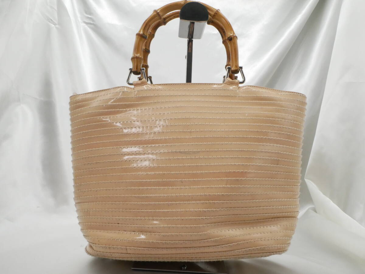 > GUCCI グッチ トートバッグ ハンドバッグ バンブー エナメル パテントレザー アイボリー オフホワイト