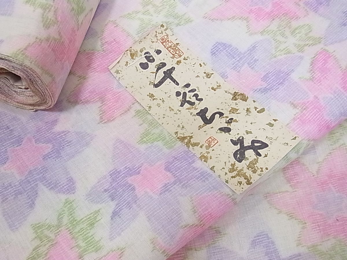 > eふれんず◆夏物 小千谷ちぢみ 反物 着尺 舞花文 未使用品 未仕立て◆bm1800