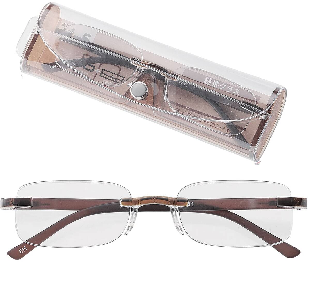 - ツーポイント 調 おしゃれ 軽量 老眼鏡 (疲れにくい バネ丁番 仕様) メンズ ブラウン +1.00