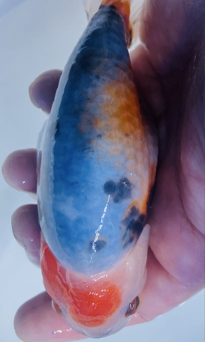 - 【中金】紅一文字江戸錦らんちゅう 約14㎝± 中国産金魚 播氏金魚 極太スモールテール(H6)