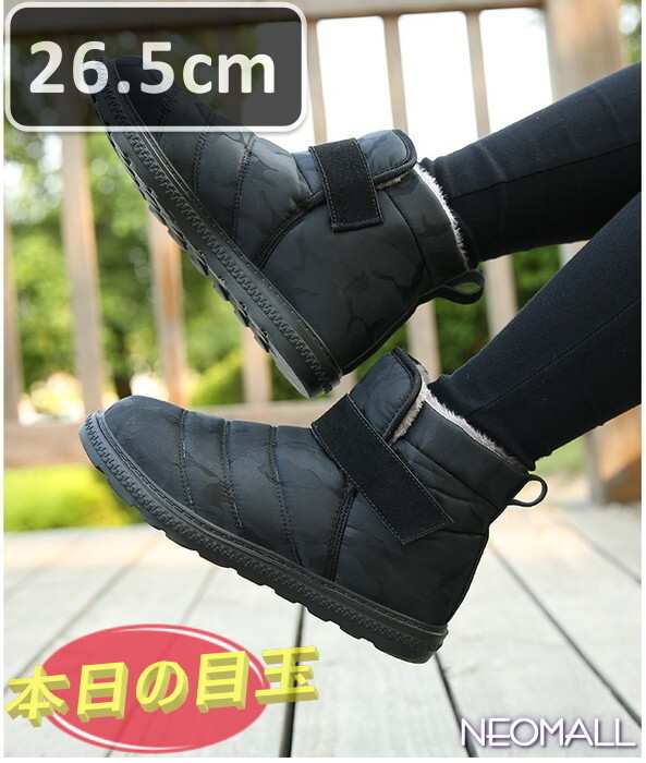 > ユニセックス スノーシューズ 【870】 26.5cm 迷彩ブラック ムートンブーツ スニーカー ウィンターブーツ 裏起毛 防水 防寒 防滑 冬用靴