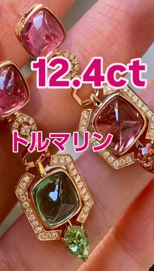 > アールデコスタイル 12.4ct トルマリン ダイヤモンドピアス「12.4カラットのアールデコ美学—— モダンで個性的な輝き」新作新品未使用