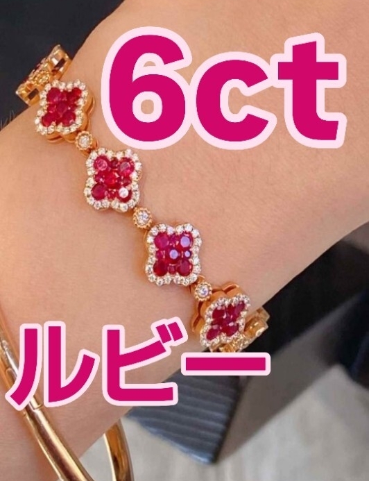 - 6ct ルビー四つ葉クローバー 18Kブレスレット「6カラットのルビーが紡ぐ、都会の幸運物語」新品未使用