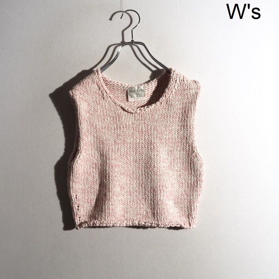 - P9722P ▼forte forte フォルテフォルテ▼ ローゲージ コットンナイロン クロップド ニットベスト ホワイト ピンク / ジレ 春秋 rb mks