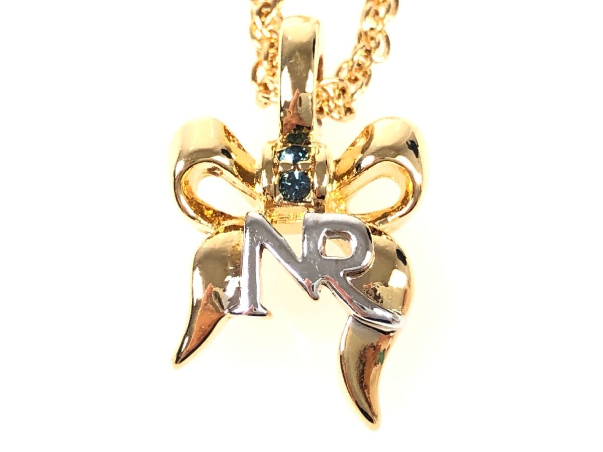 > 未使用 ニナリッチ NINA RICCI リボン ラインストーン ネックレス ゴールドカラー YAS-5588