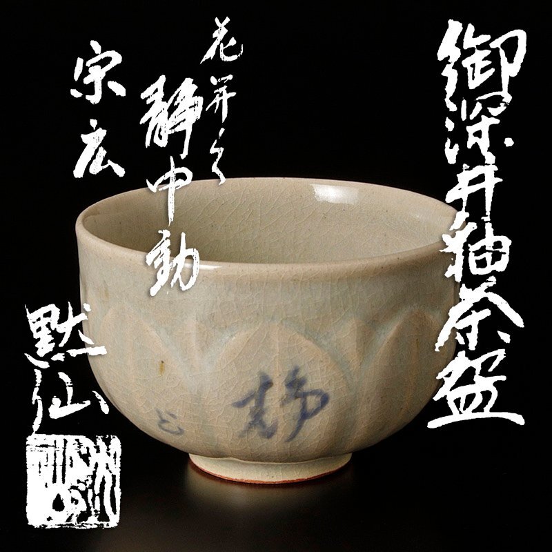 > 【古美味】中島黙仙『速水宗広書付・自筆』御深井釉茶碗 銘:静中動 茶道具 保証品 5wIV
