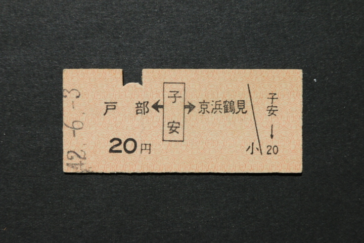 - 京浜急行電鉄 乗車券 戸部←子安→京浜鶴見 20円