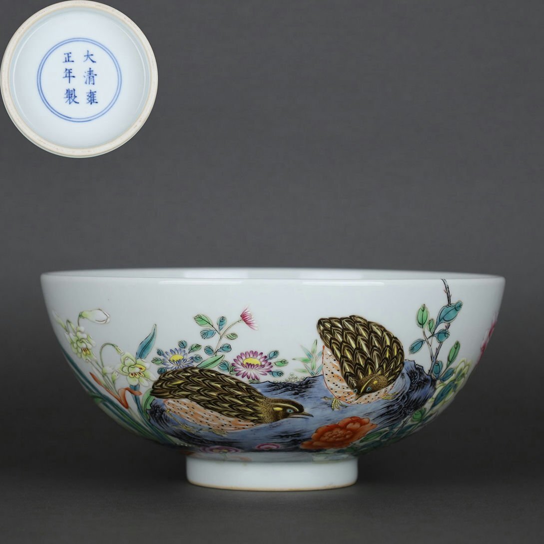 - ◆羽彰・古美術◆Y5869清雍正年製 粉彩安居樂業図碗・古陶磁器 ・珍品旧蔵・古賞物・時代物