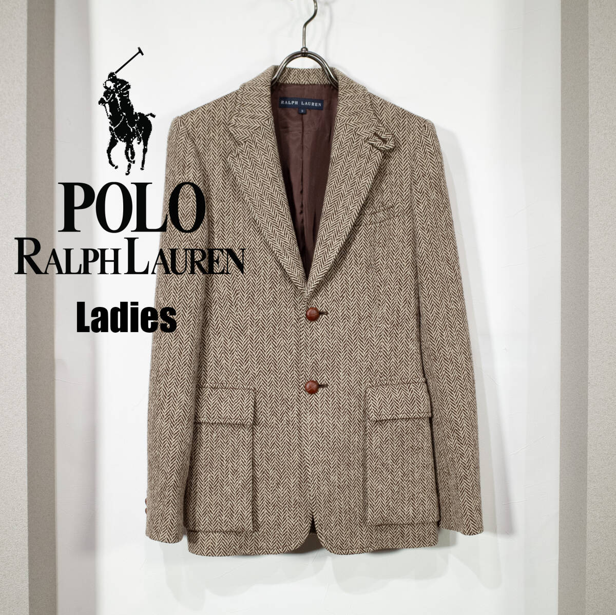 - レディース 9号 / 90s RALPH LAUREN ラルフローレン ヘリンボーン ツイード テーラードジャケット エルボーパッチ ウール クラシック 茶系