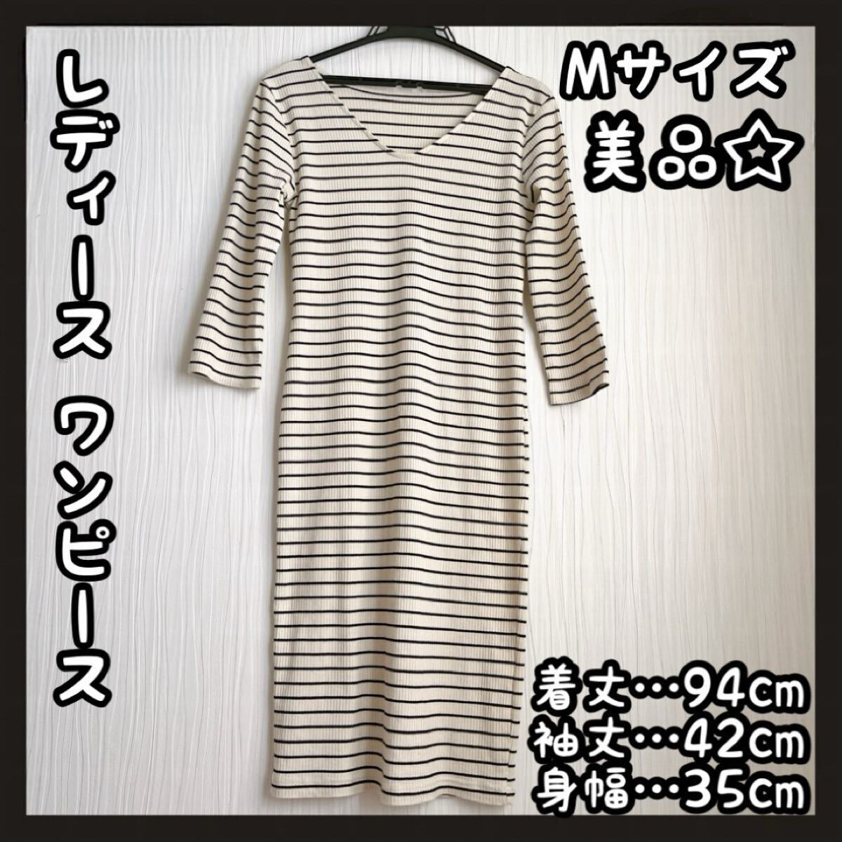 - レディース ボーダー ホワイト ワンピース マタニティ Mサイズ 秋服 美品