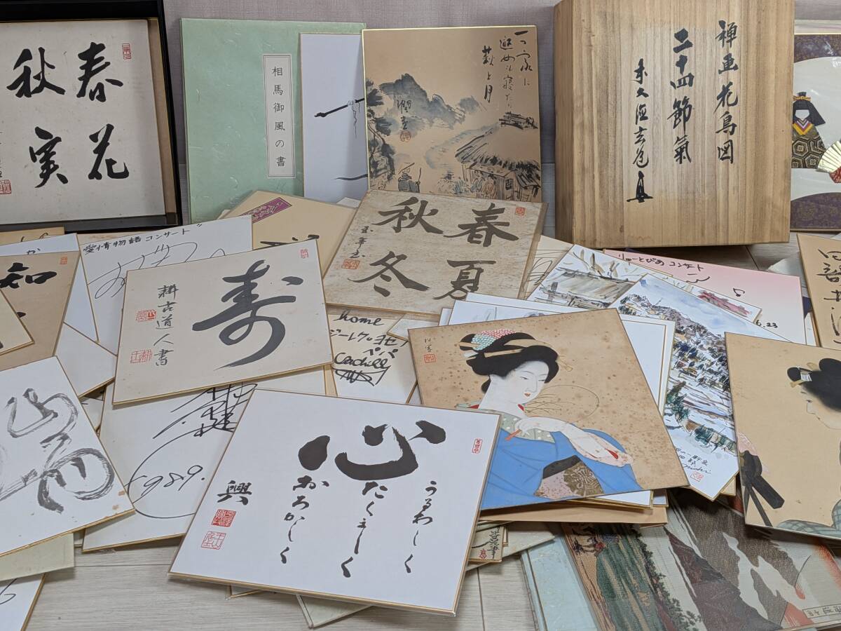 - to-色紙 まとめて 大量 130枚位 サイン 書 絵画 日本画 水彩画 人物など 詳細不明