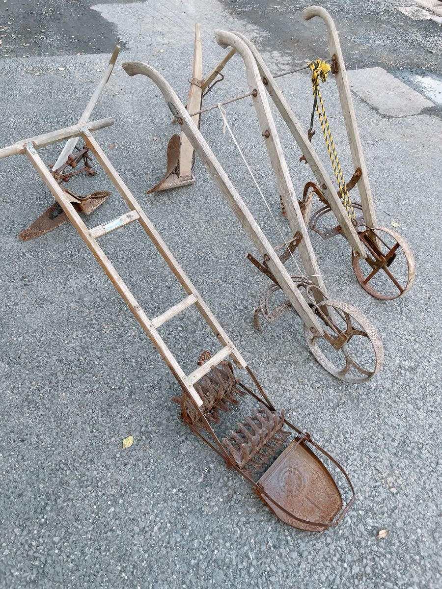 - 引取限定 中古 古い 農具 まとめて 鋤 犂 カルチベーター 除草機 補修あり 部品取り 手押し 古道具 小道具 古民具 茨城県 1018え3 M外