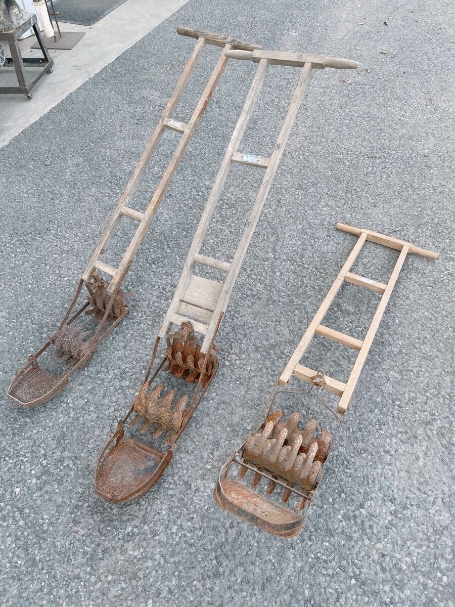- 中古 除草機 3点 まとめて 水田 除草器 手押し 草取り 昭和 レトロ 古道具 田んぼ 小道具 古民具 昔の道具 茨城県常陸大宮市 1018え2 O 西