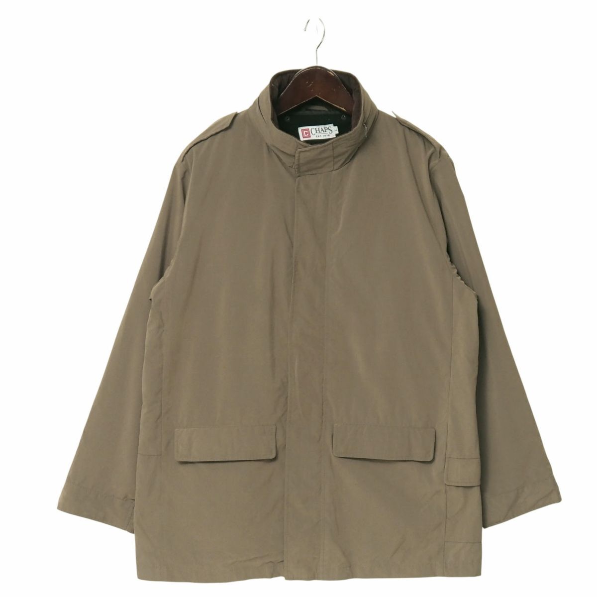 > TI7293◎CHAPS チャップス メンズL トリコット起毛ライナー付 ジップアップ 比翼 ミドル丈 コート フード収納 カーキブラウン系