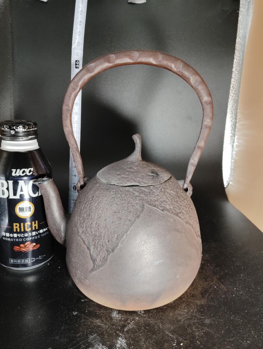 - 茄子 南部鉄器 南部鉄瓶 鉄瓶 煎茶道具 茶道具 時代物 急須 茶器 アンティーク 骨董品 明治時代 龍文堂 立徳 仁左衛門
