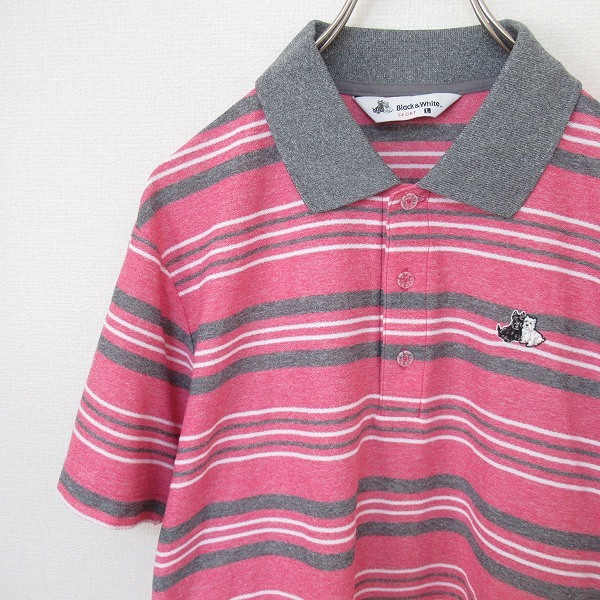 - ブラック&ホワイト Black&White ロゴ ポロシャツ カットソー ゴルフウェア ボーダー s908912ss