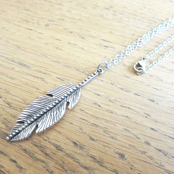 - フェザーモチーフネックレス 合金チャームネックレス ステンレスチェーン NG13