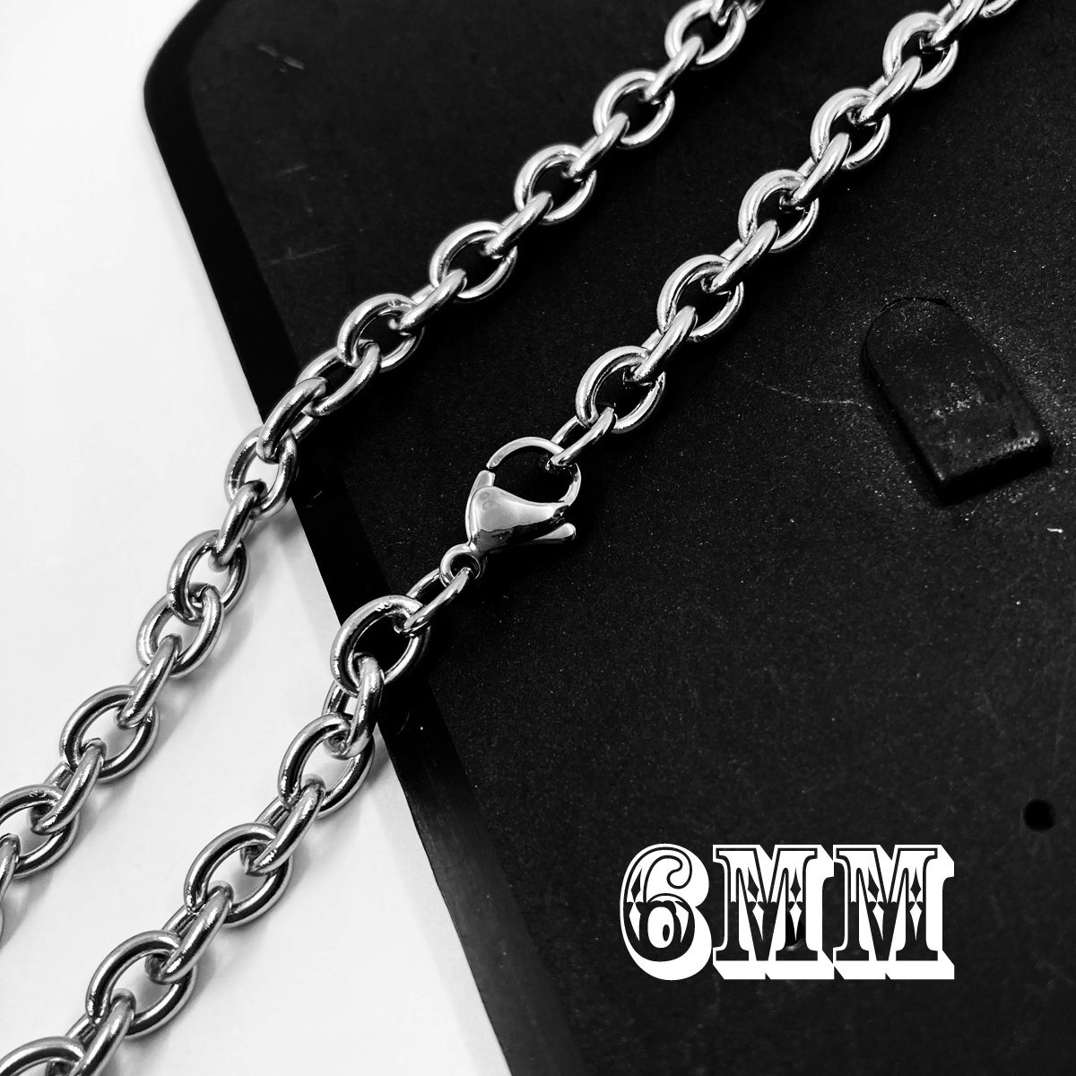 - 6mm幅約45cm 小豆チェーン ステンレスネックレス カットなしアズキ あずき