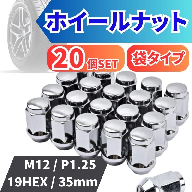 > ホイールナット M12 P1.25 35mm 19HEX スチールナット 袋ナット 20個 セット ニッサン 日産 スバル スズキ