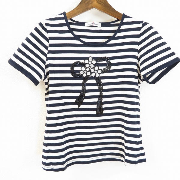 > #s ギャラリービスコンティ GALLERYVISCONTI カットソー 2 紺 白 ストライプ 半袖 スパンコール リボン 花 913096 k01
