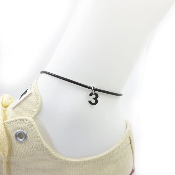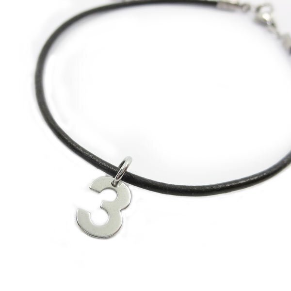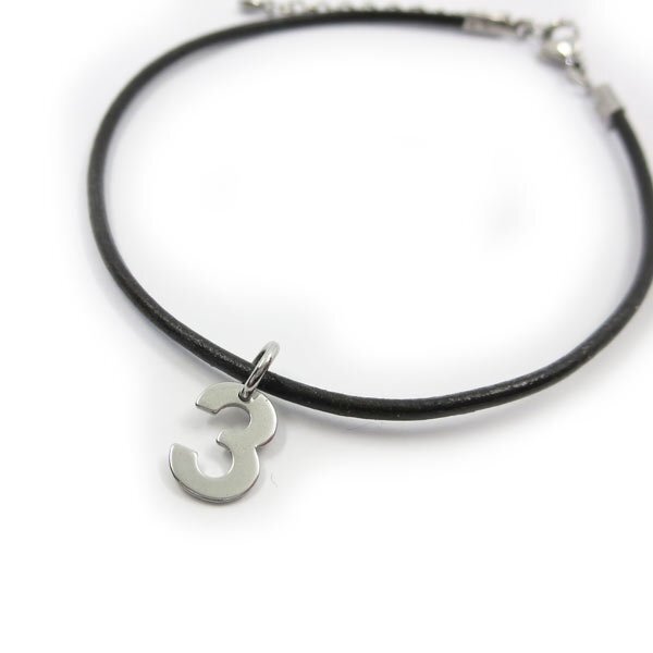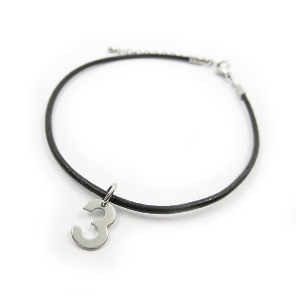 - 3 レザーアンクレット ナンバーチャーム付き ステンレス金具 27cm(23+4cmアジャスター)