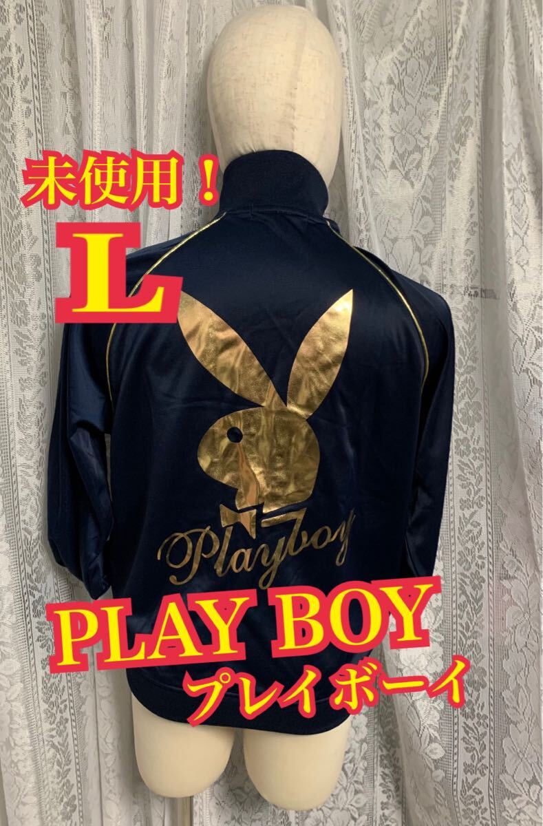 - 未使用!PLAY BOY プレイボーイ 長袖 ジャージ プリント デカロゴ ネイビー Lサイズ