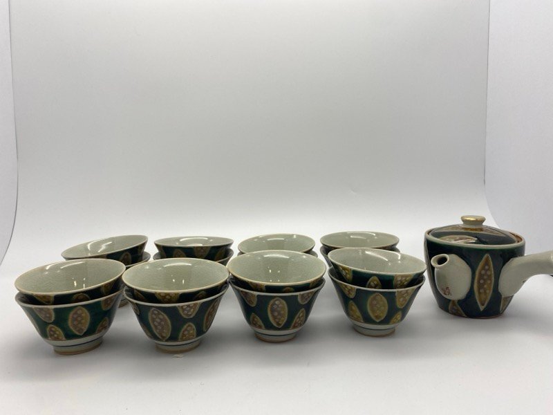 - 旧家蔵出し 石川県 伝統工芸 九谷焼 仙春 茶器 急須 湯呑16点 茶道具 骨董 アンティーク 昭和 KUTANI ☆ちょこオク☆80