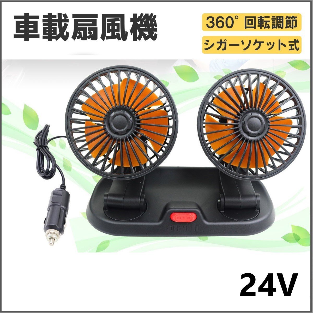 - 【送料無料】360°角度調整 車用扇風機 シガーソケット電源 24V 汎用 双頭車載ファン ツインファン 車載ファン 2段風速風量調節