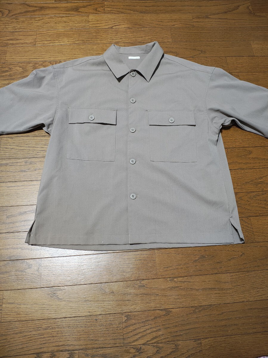 > GU ジーユー ダブルポケット ワイドフィット シャツ 半袖 5分袖 メンズ サイズM オーバーサイズ 薄茶