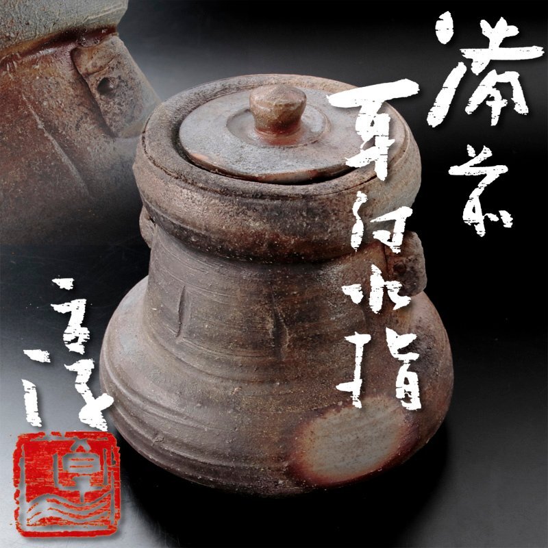 - 【古美味】見事な景色!人間国宝 伊勢崎淳 備前耳付水指 茶道具 保証品 h6EM