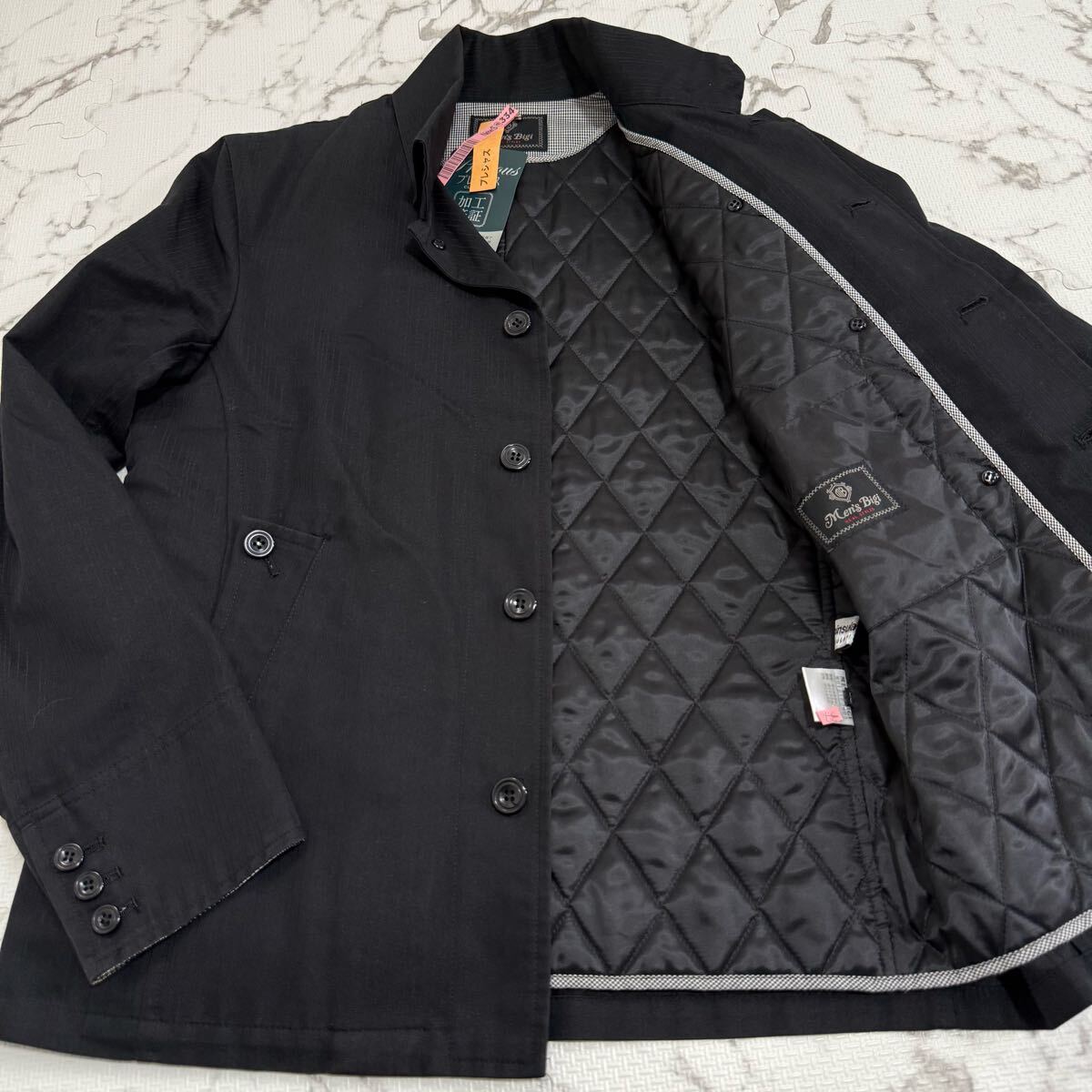 > 美品!!! 希少L!!! MEN'S BIGI【至高の2way】メンズビギ ハーフコート アウター キルティングライナー付 ヘリンボーン グレー ビジネス 千鳥