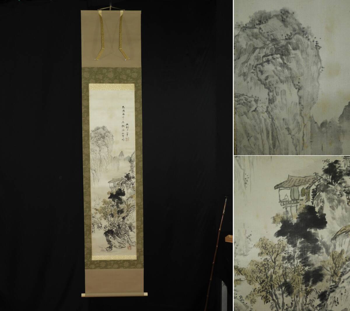 - 【真作】中村不折(瀑布**図)絖本 共箱 二重箱 掛軸 骨董 絵画 書 真筆保証 肉筆保証 古画 日本画 古美術 骨董品