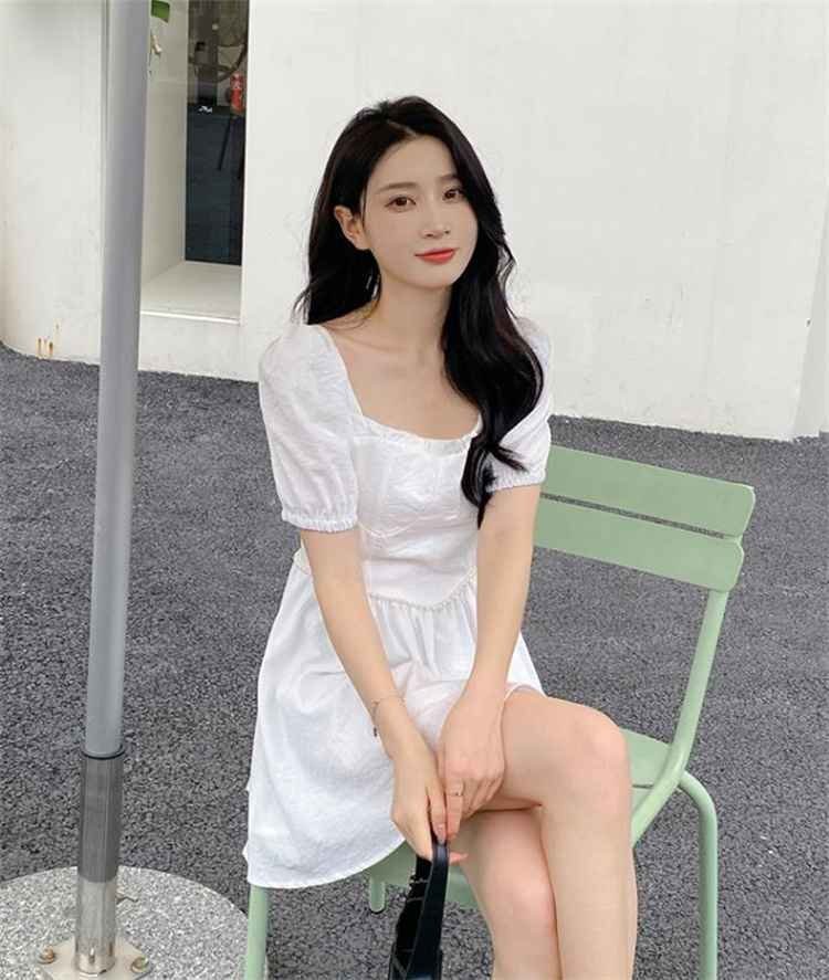 - レトロ パフスリーブ ミニ丈 ワンピース ドレス XL ブルー