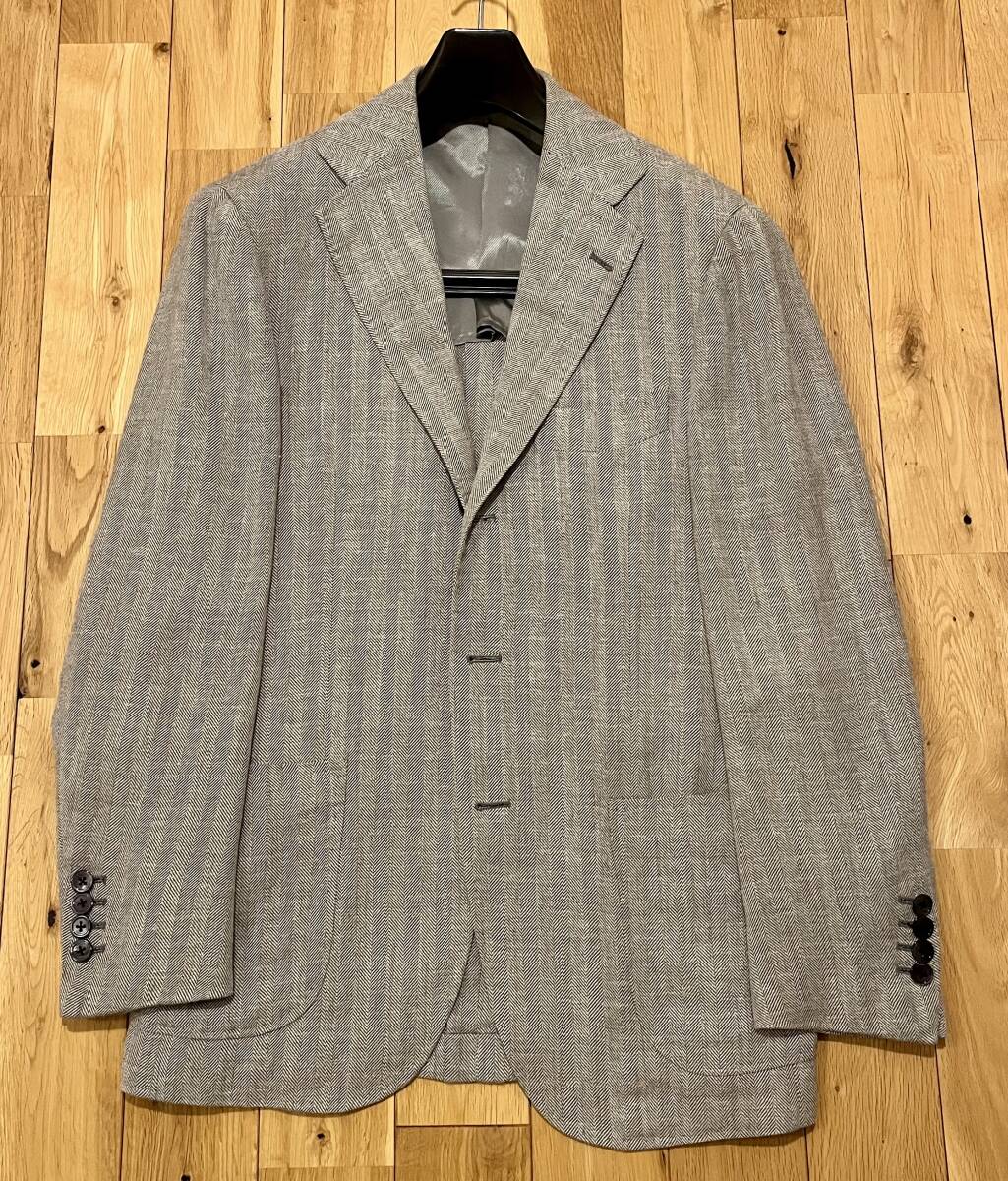 - リングヂャケット【RINGJACKET】春夏物マイスター仕様ハンドメイドライン 英国E.THOMAS社グレイヘリンボーン柄【46】