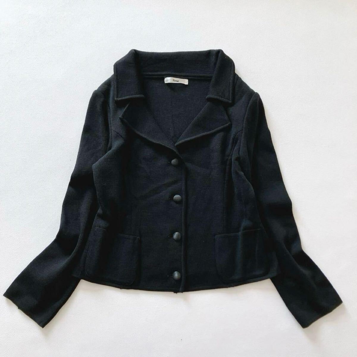 - ルネ ニット ジャケット M ブラック ミラノリブ 長袖 カーディガン 黒
