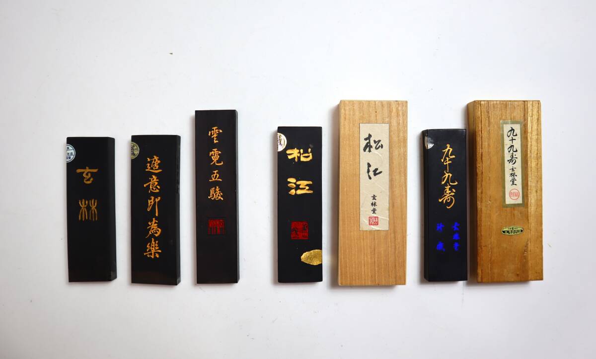- 書道 墨 日本製 玄林堂5種 『九十九寿』・『松江』・『適意即為楽』・『霊■五駿』・『玄林』