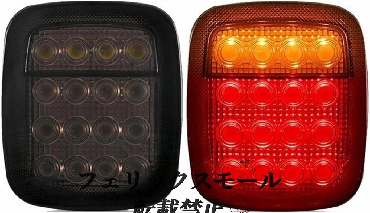 - ジープ ラングラー YJ TJ CJ 用 LEDテールランプ スモーク仕様 16連LED ブレーキ&ウインカー付き 2個セット