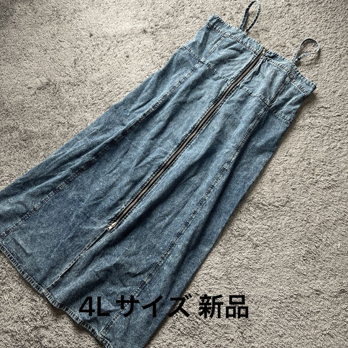 - 大きいサイズ フロントジップブルーウォッシュケミカルデニムロングワンピース4L★ゆうパケット配送可能★新品39