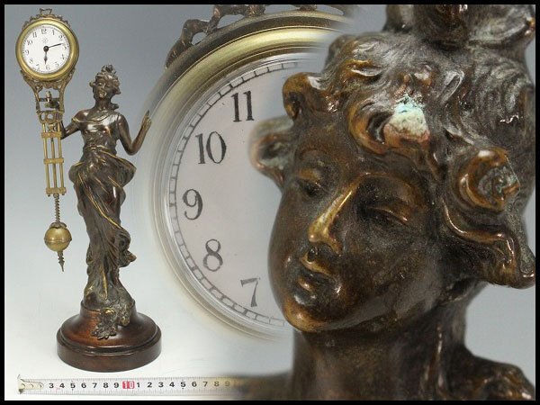 - 【金閣】女神ブロンズ 振り子 時計 ユンハンス ゼンマイ手巻き時計 アンティーク 希少 旧家蔵出 送料無料(LC878)
