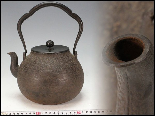 - 【金閣】茶道具 刷毛目 鉄瓶 大サイズ 美品 旧家蔵出 送料無料(XA824)