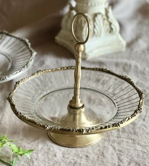 クラシカルで高級感ある真鍮とガラスのトレーです。