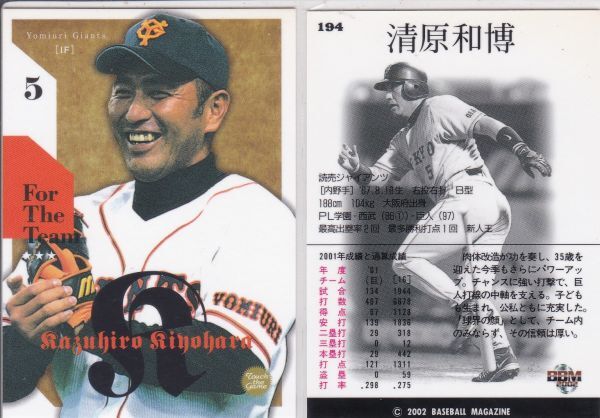 - ●2002BBM/TTG 【清原 和博】 サブ版:For The Team No.194:巨人 R2