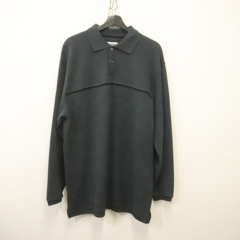 - t206 90sビンテージ Firethorn 長袖ポロシャツ■1990年代製 表記Lサイズ 黒 ブラック アメカジ ストリート 古着 激安 古着卸 ヴィンテージ