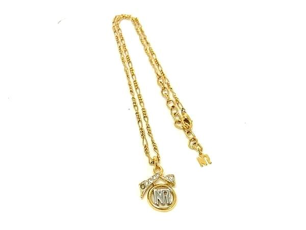 > ■美品■ NINA RICCI ニナリッチ ラインストーン ロゴモチーフ ネックレス ペンダント アクセサリー レディース ゴールド系 DH9059