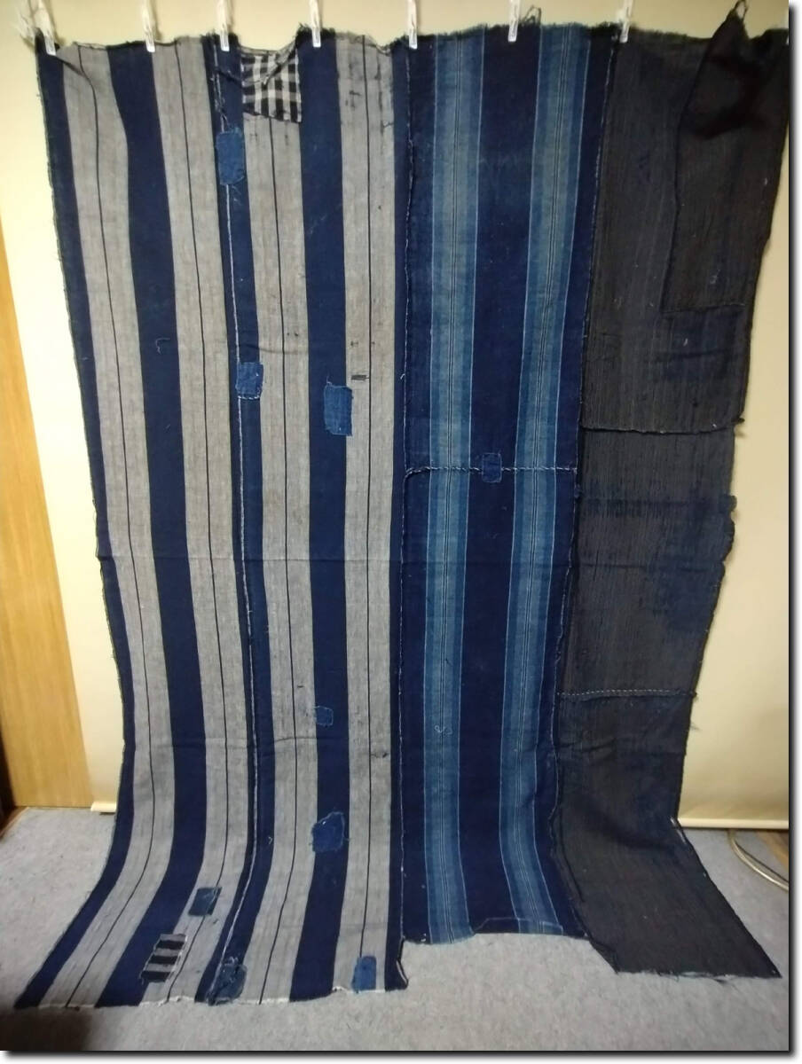 > 175古布 藍染 木綿 ボロ 4幅 ふとん皮 natural Indigo dye 着物リメイク 襤褸 ぼろ BORO 刺し子 もんぺ シーツ 布団カバー 等に