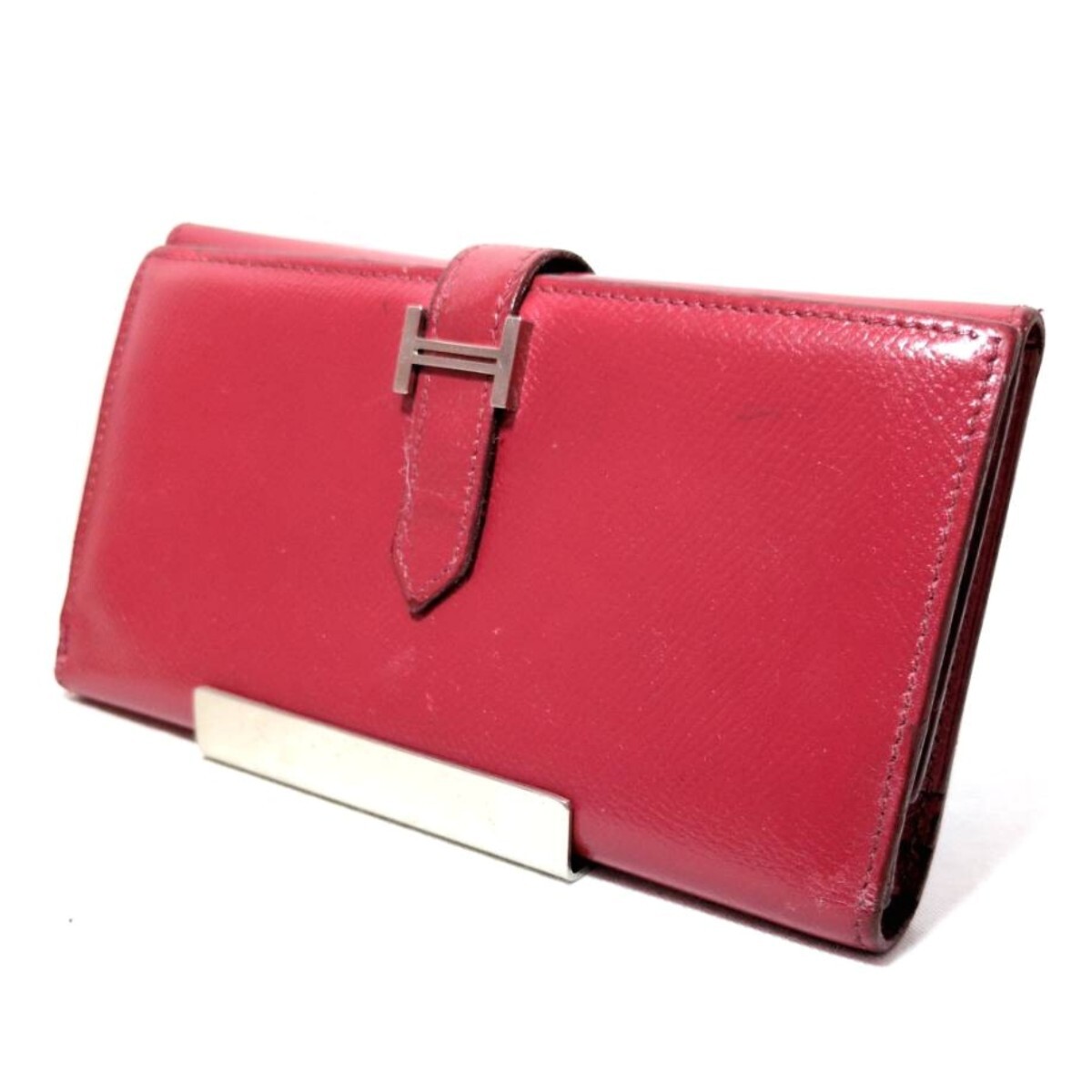 - HERMES エルメス レッド系 レザー ベアン 3つ折り 長財布 □L刻印